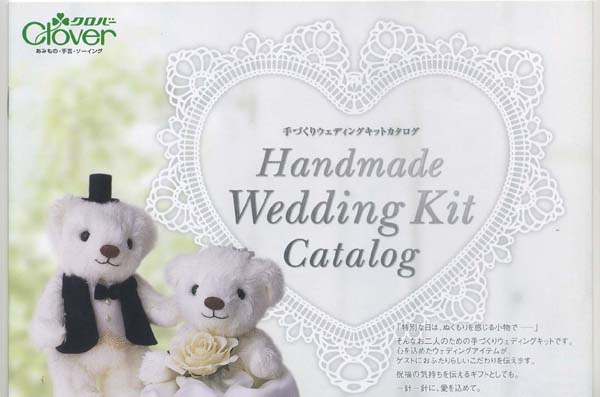 「クロバー」のウエディング用の手づくり手芸キット商品カタログです。おおまかに(1)ウエディングベア18点(2)リングピロー8点、アーチスタンド2点(3)ウディングラビット6点、ウエディングドッグ4点(4)和風ウエディングベア3点、和風リングピロー2点が掲載されています。これ一冊あるとすごく便利だと思います。手づくり商品は手芸の山久で手芸の山久では納品明細をメールにてお送りしています。商品到着時にご確認下さい。このカタログはクロバーから発売されている手づくりウエディングキットのカタログです。ハマナカなど他のメーカーも入ったウエディングキットの販売はこちらでしていますし、クロバーの手づくりキットの